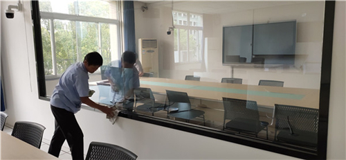 物业管理服务中心提前召开部门会议,布置安排各项校园清扫保洁任务。全体保洁员认真清扫教学楼、行政楼、实验中心、经管中心、红船精神育人展示馆、图书馆等公共区域卫生,加强保洁力度,仔细擦拭窗户、地板、桌面、玻璃、实验器材等,认真冲刷台阶及卫生间,排查卫生死角;马路工来回穿梭校园马路,一遍又一遍地清扫落叶垃圾,确保校园整洁明朗;绿化养护工悉心摆放教育部专家考察线路周边绿植,认真修剪草坪、树枝,并补种书带草等绿植;保洁片长加强检查力度,来回奔走在整个校园,巡查是否存在卫生环境不达标区域,并及时进行保洁清扫。
