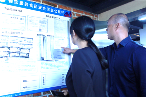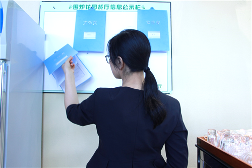 刘娅一行先后来到学校商铺围炉花园和学生六食堂,对餐厅就餐环境、后厨卫生、食品原料采购、存储、加工检验等环节进行了详细检查。在对围炉花园的检查过程中,刘娅及安全员查看了餐厅后厨生食柜,检查食品生产日期及保质期,仔细翻阅了餐厅的食品安全信息公示信息,指出食品安全信息需每日填报,切不可虚假填写。