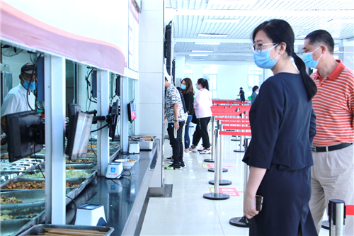 检查六食堂后厨时,众人按照要求穿戴好防护用具,方才进入后厨。从切菜区、炒菜区再到出餐区,食堂负责人都做了详细介绍,刘娅等人认真聆听并检查可能存在的食品安全隐患。刘娅表示食堂除了严格按照规定流程进行食品加工制作外,还需警惕潜在的卫生漏洞,在保证食品安全卫生的基础上,进一步为师生提高饮食服务质量。