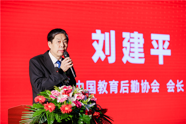 中国教育后勤协会会长刘建平致辞。他首先对给予展会大力支持的地方教育后勤行业组织、协会分支机构、全国高校及企业等各方表示衷心的感谢!他表示,今年是协会主办的第三届展览会,相较于往届,展位面积进一步扩大,展商数量进一步增加,展品范围进一步拓宽,展示文化品牌进一步提升。展会紧扣当前教育后勤关注疫情防控、节约粮食等热点难点问题,是贯彻落实党的十九届五中全会精神、实现“十四五”规划及2035奋斗目标的一项举措。他强调要实现教育强国,必须要有现代化的教育后勤保障。他表示希望协会分支机构、地方后勤行业组织、高校及参展企业持续关注、支持展会,协会将携手各方一道,共同努力将中国教育后勤展览会打造成行业的品牌,为全面实现十四五的战略目标,作出教育后勤人应有的贡献。