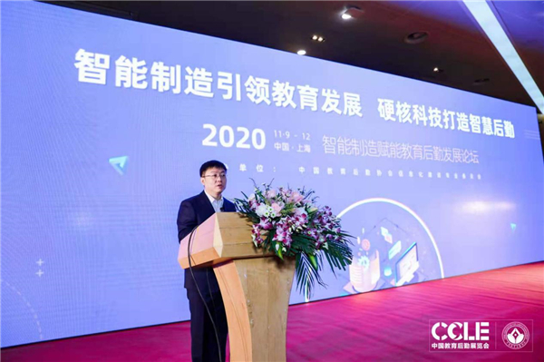 中国教育后勤协会副会长兼常务副秘书长黎玖高致辞,他对本次会议召开的及时性表示肯定,认为在十四五规划即将开局之年探讨智能制造对教育后勤服务业务的促进作用具有深远的意义。他指出,智能制造作为我国制造业发展的前进方向,也是其他行业智能化化发展的重要保障,随着智慧校园建设的不断深入,各校对于智能产品、智能硬件的需求及标准也在进一步提升,因此希望各高校加快后勤产业发展升级,重塑后勤发展理念,对原有服务技术和服务模式实施智能化改造,加快培育形成后勤发展新模式;希望各高校深化供给侧结构改革,重构后勤服务优势,强化创新驱动,推动产、学、研、用协同创新;希望各高校后勤健全信息化人才培养体系,培养和造就具有工匠精神的应用型人才,注重保护和弘扬后勤精神。