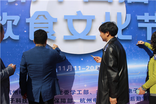 11月11日下午,杭州电子科技大学第十四届饮食文化节在五餐厅前顺利开幕。副校长吕金海、学生处、资源保障部、公共事务管理处、校工会、校团委、校党办、保卫处、研工部、国际教育学院、校医院、后勤集团负责人,校学生会以及各学院代表和饮食服务中心员工100余人参加了开幕式。