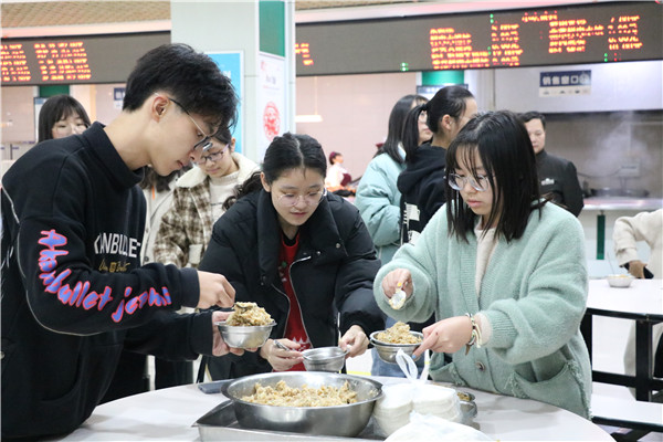 在包饺子环节,同学们热情高涨,食堂大厅内欢声笑语不断。不少同学都表示,这是他们第一次包饺子,他们即感受到了制作食物的不容易,也体验到了享用美食的乐趣。热气腾腾的饺子端上餐桌,浓浓的饺子香、酸甜的醋香,驱散了冬日的严寒,温暖了每一位同学的心。大家一致表示,在今后的每一天,将认真践行“光盘行动”,珍惜每一粒粮食,争当校园“光盘侠”,用一张小小的餐桌展现嘉院人的大文明。
