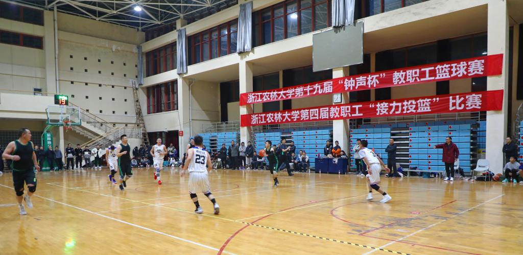 近日,浙江农林大学第十九届“钟声杯”教职工篮球赛在风雨操场落下帷幕。经过第一阶段小组单循环赛和第二阶段交叉淘汰赛的激烈角逐后,集团以64:53的比分战胜继续教育学院,以六战全胜的战绩夺得本届篮球赛冠军,实现“六连冠”。