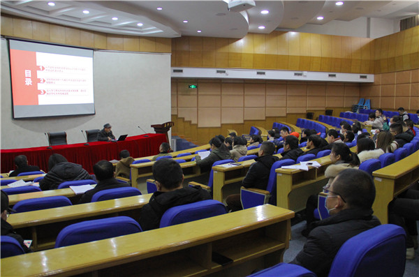 新思想引领新时代,新目标开启新征程。为推动党的十九届五中全会精神深入基层、深入群众、深入人心,根据校党委宣传部统一部署,12月16日下午,嘉兴学院后勤服务集团党委在行政楼一楼报告厅举行党的十九届五中全会精神辅导报告会。集团党委书记徐云庆作学习贯彻党的十九届五中全会精神辅导报告,集团党政领导班子成员、全体党员参加报告会。