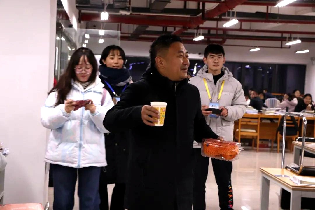 自习室内,每位同学都在奋笔疾书。王诗根手拿姜茶和脐橙进入自习室向积极备战考研的学子说道:“一杯姜茶送温暖,两个脐橙祝大家考研成功。”王诗根将脐橙打包装盒,把这一盒盒装满期望与爱意的脐橙递给考研学子。一句句温暖的祝福伴着姜茶和脐橙传递到每一位考研学子的心中。让备战考研的学子感受到学校的关心和支持,自习室内传来阵阵掌声。学子们纷纷表示,自己一定会抓住机会,迎难而上,力争实现自己的考研梦想,以优异的成绩回报学校的培养和关怀。