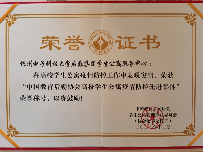12月12日至14日,中国教育后勤协会学生公寓管理专业委员会第二届二次常委会暨疫情防控先进集体和个人表彰大会在桂林召开。杭州电子科技大学被授予“全国高校学生公寓疫情防控先进集体”称号,是浙江省属高校唯一获得先进集体表彰的单位。