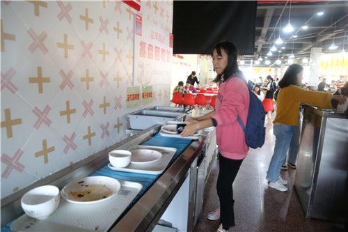 在东湖食堂三楼打造的智慧餐厅,自投入使用至今便启动了“智能称重、无感支付”就餐系统。当菜品从盛菜器皿中被舀出后,机器会根据减少的菜量自动计算出费用,哪怕只想要几毛钱的量也是可行的。通过该系统,同学们可按喜好自助选菜,真正实现了“喜欢的菜多打,只想试试味道的菜就少打,想吃多少打多少,全凭自己掌握”。这种智能用餐的新模式,不仅给予了同学们现代化、便利化的用餐体验,而且通过按需取餐,有效避免了消费环节的浪费。