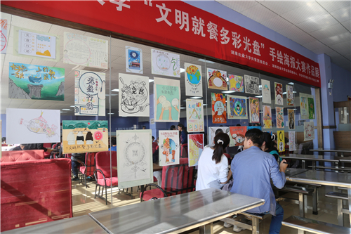 在丰泽食堂三楼餐厅,食堂与校团委联合举办了“文明就餐、多彩光盘”手绘海报大赛。各院系同学踊跃参与,纷纷用手中的画笔或电脑,勾画出自己心中对“勤俭节约”传统美德的理解,从艺术文化的角度诠释了“节约光荣,浪费可耻”的价值观和生活方式。目前,食堂已将征集的200多幅优秀作品张贴于餐厅的文化展示区,吸引了很多就餐师生驻足观赏。