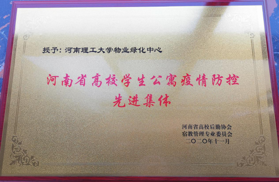 近日,河南省高校后勤协会宿教管理专业委员会传来喜讯,河南理工大学物业绿化中心被评为“河南省高校学生公寓疫情防控先进集体”,办公室主任张彬获“河南省高校学生公寓疫情防控先进个人”荣誉称号。
