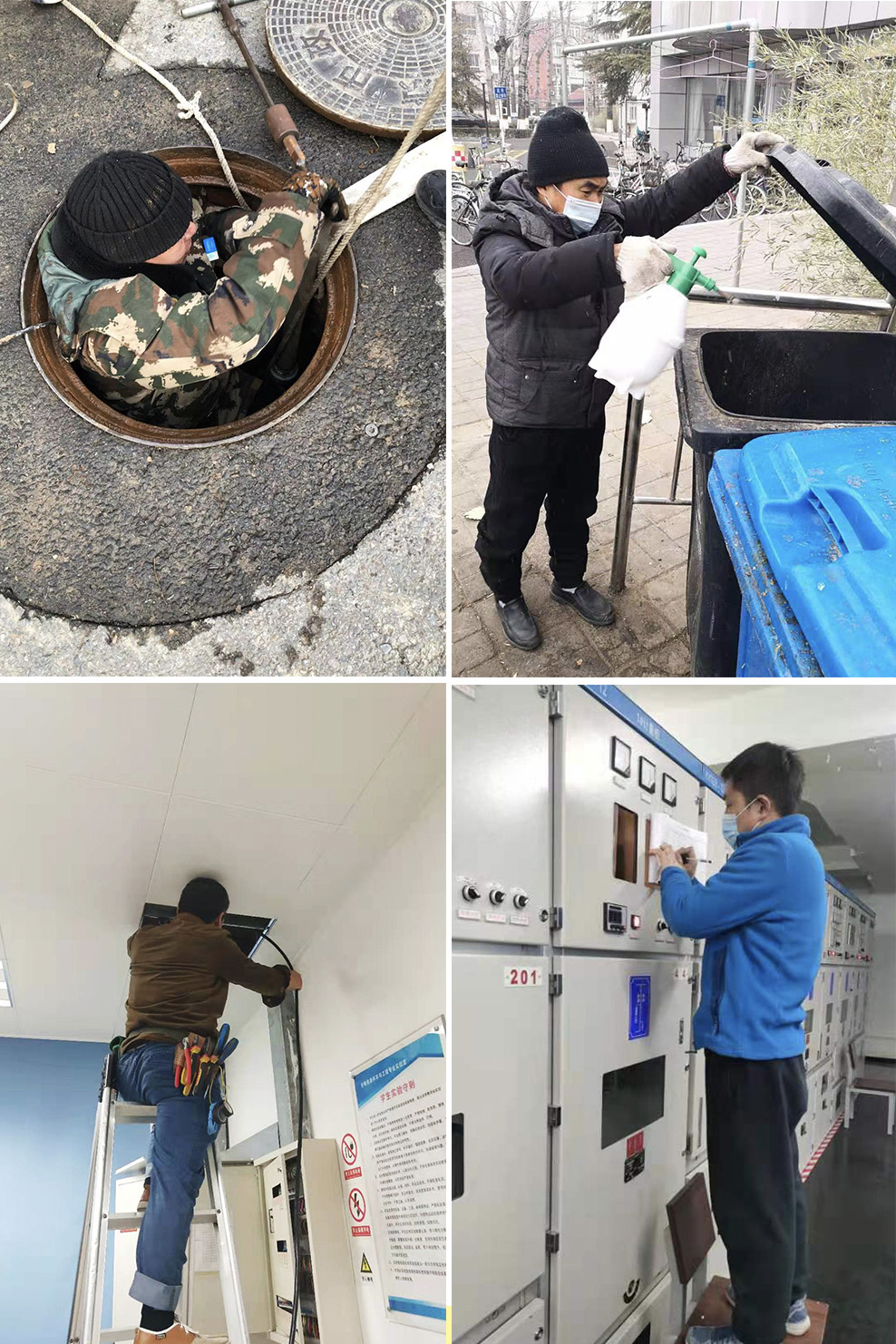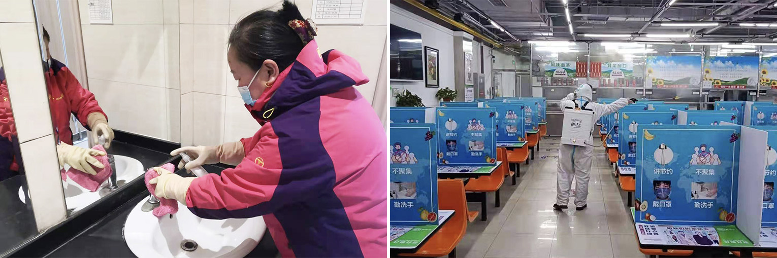 饮食中心积极做好供餐准备,细致落实餐厅消杀、食材安全监管、物资储备等工作;公寓、楼宇中心对宿舍、教室等区域展开全面清洁,提前通风换气;楼宇、校园、热力等中心扎实做好楼内、校园环境的清洁消杀工作,重点加强公共区域电梯间、楼梯、卫生间等区域消杀工作,保障校园环境清洁;水电、修缮等部门认真落实供水、供电系统检测,组织人员进行全面检查,确保相关设施设备安全稳定运行;汽车队对车辆进行全面消杀、检修,及时消除安全隐患,保障师生出行安全。