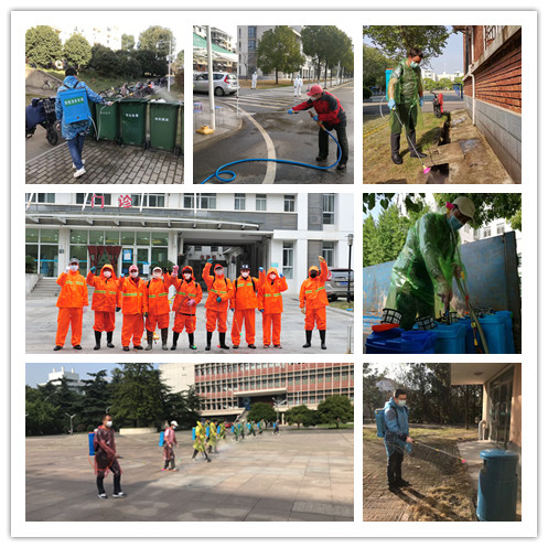 组建15人校园环境消杀突击队。留校党员张涛、陈芳浩、童攀、许汉中带领入党积极分子张愚、叶虎、夏添等一行15人,身背40斤消杀喷雾桶穿行于校园各条道路,并利用高压洒水车、高压喷药机对校园垃圾桶、垃圾车、垃圾站、校医院、学生区、教学区等重要部位进行消毒消杀。据不完全统计,他们日均公共道路消杀面积达5万平方米,学生宿舍区、校医院、住宅区等区域消杀面积达2.5万平方米。除此之外,还完成着200余个垃圾桶,8个垃圾箱,5个地埋式垃圾站,1座水平式垃圾中转站,6台在用垃圾车的消毒消杀处理。日均用药原液30多公斤、喷洒药水达4吨。