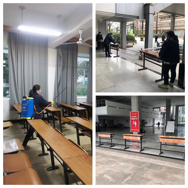 此次服务共计2800余名考生,涉及95个考场布置。为保证考试顺利进行,给考生营造一个安全、整洁、舒适的考试环境,物业服务中心提前部署,按照学校相关要求制定了详细的后勤保障方案,对考场楼宇的教室灯管、桌椅、黑板、多媒体机柜等设施设备和其他各类开关及线路进行全面排查检修,保障考试期间设施设备能够正常使用;同时,配合教务处布置标准化考场,提前做好考场消毒、通风工作,设立临时隔离点和医务室,以应对突发情况。