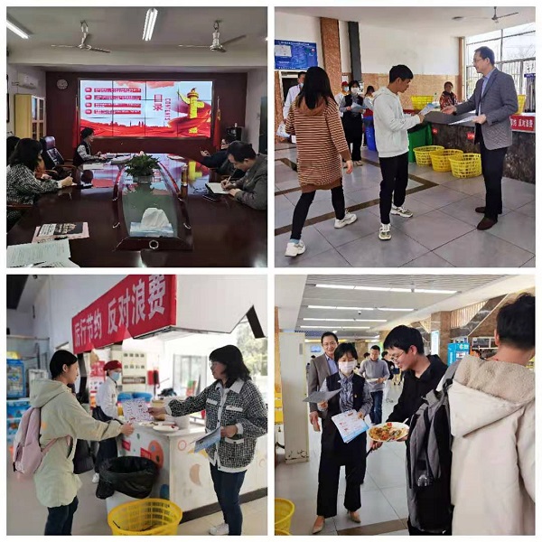 会后,全体党员深入食堂开展了“厉行节约,反对浪费”志愿服务。发放宣传单,倡议师生践行“光盘”。绝大部份同学都明白“饱食终日,粒粒可馨”的道理,并开心地展示了他们的“光盘”!