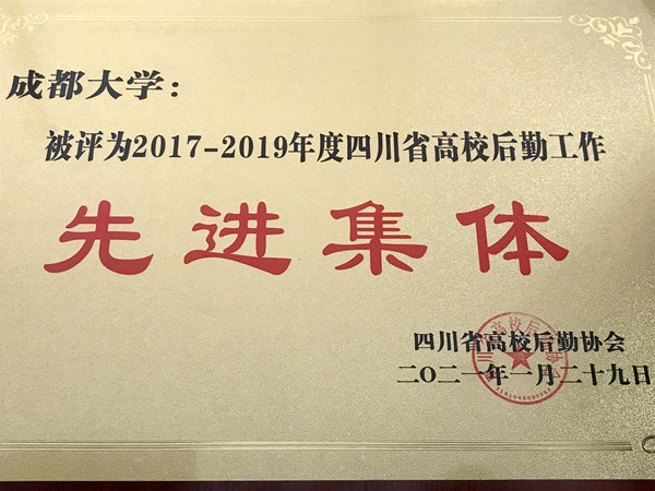 大会表彰了2017—2019年度四川省高校后勤先进集体、先进个人和优质服务企业。成都大学荣获“先进集体”称号,成都大学后勤处副处长虞海霞代表学校领奖。唐勇、徐春兰、袁建国获得“先进个人”称号。