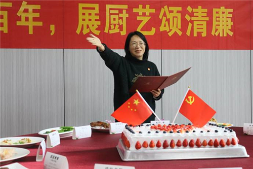 “清廉本色,代代相传,平凡岁月,服务育人,数风流人物,还看后勤人”清廉菜品展示结束后,支部书记、后勤基建部部长王晓玲充满激情地朗诵了一首自己创作的诗,以诗赞扬后勤人立德树人、服务育人、艰苦奋斗的精神,以诗呼吁后勤人继续风清气正地做好服务保障工作,建设更美后勤。