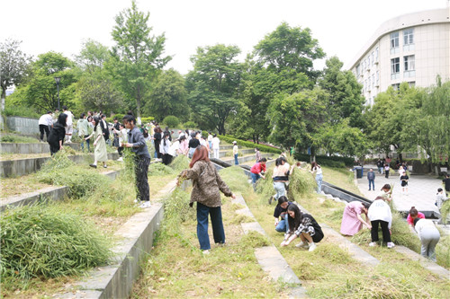5月7日上午,一堂饶有趣味的绿化劳动实践课正在开展。在8105教室,赵峥老师以“大美湖医药 生态园林校”为题,图文并茂讲述了校园绿化劳动、生态园林式校园建设理念和收割油菜要领。随后,药护2020级中职护本班同学们移步未湖边的油菜花田,10人一组,分工协作,包干一个区域的收割任务。在绿化师傅们指导下,大家躬身弯腰,使劲将油菜连根拔起,抖落根部泥土,一棵棵整齐摆放在水泥步道上,随后组内两三人协作捆扎、运送到推车上。一个小时的劳作,半亩地的油菜收割完毕,不少同学脸上通红,汗水浸满脸颊,看着堆成小山的劳动果实,喜悦地拍照留念。