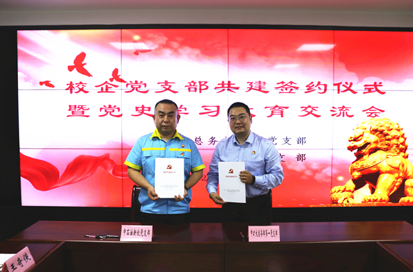 为进一步提升基层党支部的组织力,发挥基层党支部的战斗力,增强基层党支部的创新力,强化党史学习教育的实效力,5月20日,中国矿业大学总务部机关党支部与中石油新欣党支部联合开展了“校企党支部共建签约仪式暨党史学习教育交流会”。总务部原党委书记张惠忠,中石油徐州分公司党委书记王野思,党委委员、副经理曹春雷出席活动,双方党支部的全体党员参加了活动。活动由总务部机关党支部书记郝雄飞主持。