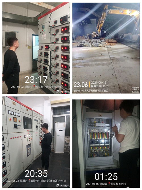为确保学校教学科研和师生员工工作、生活的水电正常可靠供应,能源管理中心的计划性维修保养全部都安排在夜间、并尽量在周末进行,师生员工几乎看不到他们的工作场景。能源管理中心今年夜间维修任务已达30项,4月下旬,各校区二次供水水库清洗,供水工作人员共计10天凌晨值守;5月12日—13日,湘雅新校区主供水管漏水抢修,供水技术人员连续2个通宵蹲点指挥;5月22日,校本部物理楼、升华楼安装雷电防护装置,高压配电技术人员作业至凌晨1点……通宵工作是常有之事,在一个个不眠之夜中,他们早已练就了一身“夜猫子”的本领。