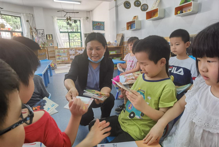 看到孩子们对党史绘本的喜爱,湖工幼儿园韩书记、蔡园长高兴向社区何副书记说到“我们幼儿园的孩子们的阅读书籍还是很多的,但是党史绘本还真的不多,社区真是想我们所想,太感谢送来的这批党史儿童绘本书籍。”