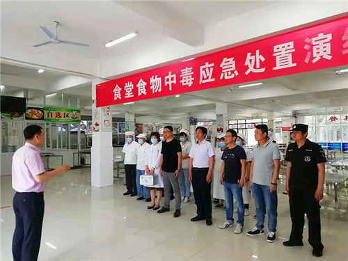 为贯彻落实《中华人民共和国食品安全法》《突发公共卫生事件应急处理条例》,保障师生身心健康与生命安全,检验学校应对突发公共卫生事件的快速反应和应急处置能力,5月28日下午,沙洲职业工学院在第一食堂一楼餐厅组织开展了食物中毒事件应急处置演练活动。本次演练由后勤保卫处全程指挥,保卫科、卫生所、食堂相关工作人员参加了演练。