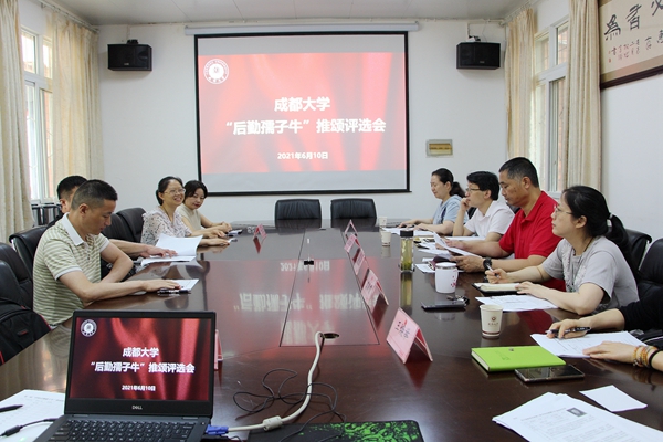 6月10号, “成都大学后勤孺子牛”推荐评选会在后勤办公室举行,成都大学后勤处党总支书记黄沛、副处长虞海霞、宣传部副部长王建武、工会办公室主任邱珩、学生处办公室主任覃晓岚担任评委。10名参赛选手由学生处和后勤处推荐,分别就餐饮、节能、管理、公寓物业、绿化五个类别进行分类pk。