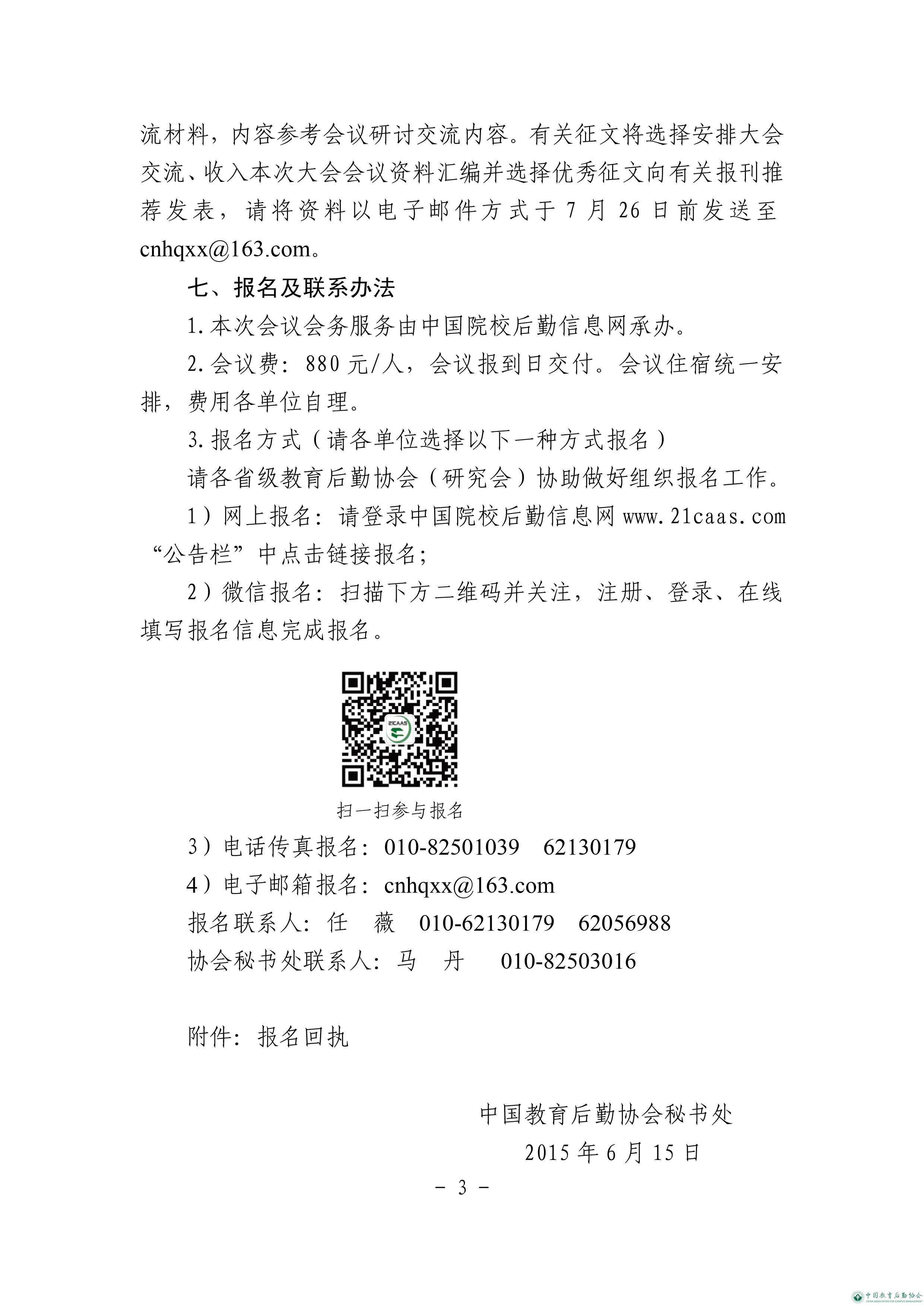 日期:2015年06月16日 来源:中国教育后勤协会秘书处 阅读: 次