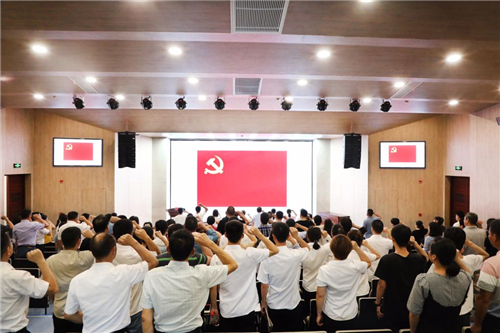 大会举行了新发展党员入党宣誓仪式,郑本军带领新发展党员和全体老党员一起重温了入党誓词。全体党员面向党旗庄严宣誓,宣告自己为党和人民服务、为学校和集团发展贡献力量的坚定信念。