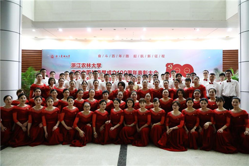 7月1日,浙江农林大学庆祝中国共产党成立100周年表彰大会暨“百年颂歌”师生合唱比赛在东湖校区影剧院举行。
