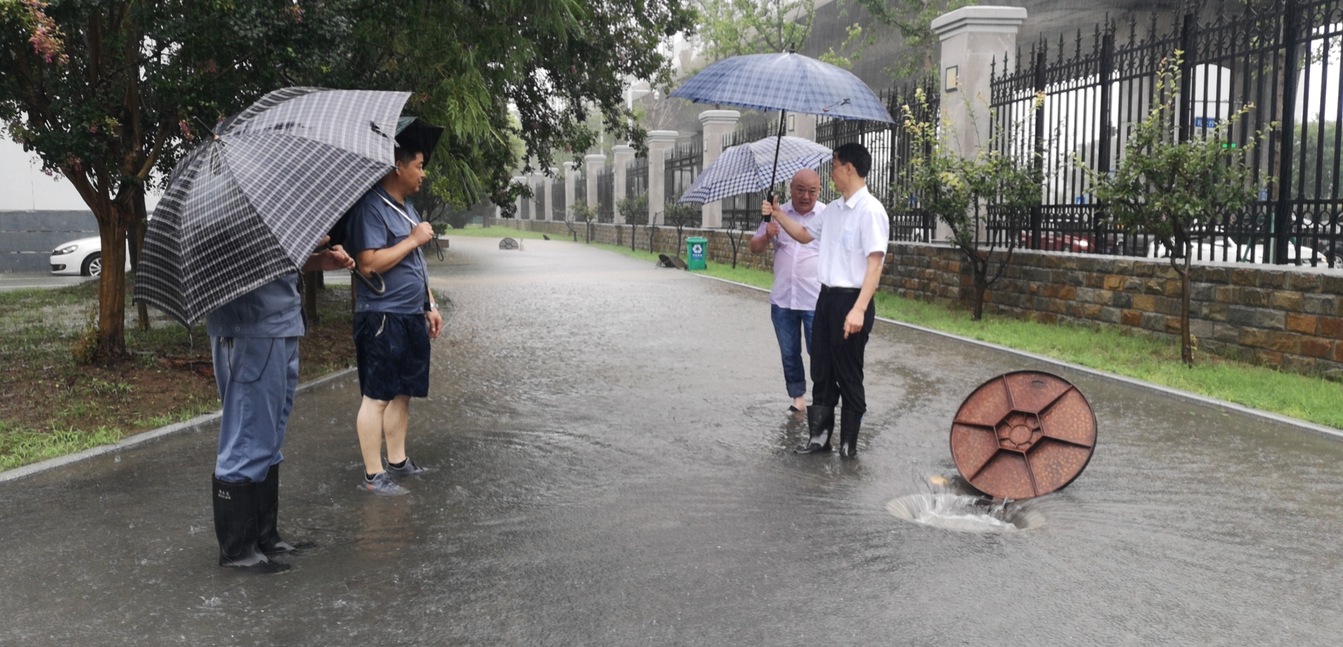 7月27日-28日,台风“烟花”来袭,江苏淮安市普降中到大雨,造成江苏护理职业学院校园内多处积水,个别下水道有堵塞,个别地下车库有进水现象。江苏护理职业学院后勤保障部党总支书记曾巨祥率领干部职工和欣祥物业公司工作人员一起冒着风雨,踏着泥水,持续开展多轮巡查,发现有积水处,立即打开窨井盖,迅速排清积水,发现排水管道有杂物堵塞,予以及时清理疏通。后勤保障处还紧急调来市政排污疏通车,对堵塞的下水道进行了疏通。巡查发现礼堂地下车库有进水,应急抢险人员及时打开抽水泵,予以排水除险,彻底清理积水。