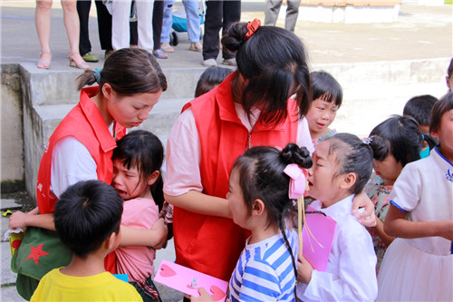 在活动结束之际,主持人刘春岑以及实践团全体成员含着泪与合爱小学的小朋友们道别:“小朋友们,你们的一生我们陪此一程,不忍离别,但车已到站,我们将原路返航,你们的未来将远走高飞,愿你们前程似锦,未来可期。”