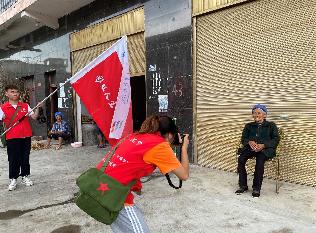 图为实践队队员正在为古稀老人拍照