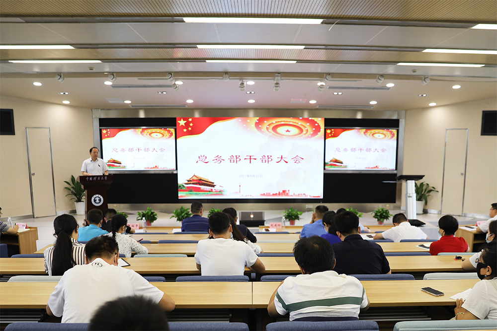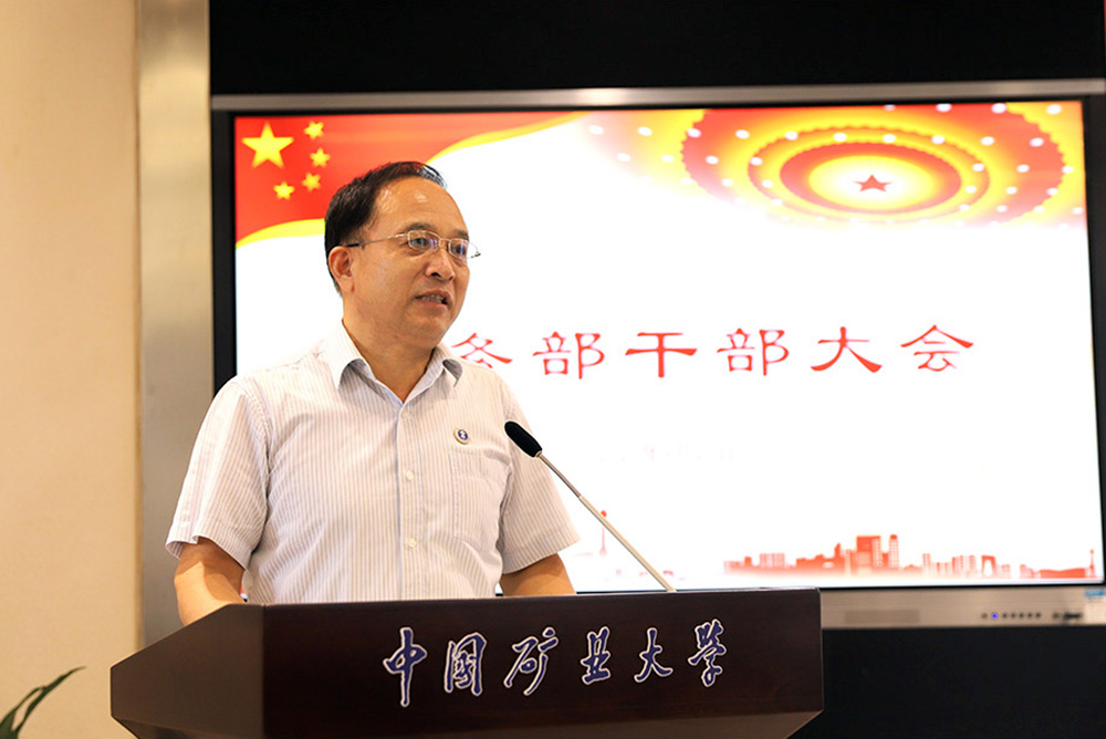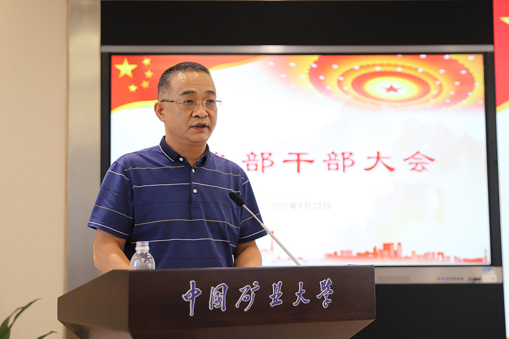 总务部党委书记、部长陈仲元说明了近期提拔的赵清等10名中层干部的整个选拔过程,指出了总务部政治生态的良好态势;同时他就总务部2021年上半年工作进行了凝练总结,他说:“第一,学校新的后勤服务保障体系初步形成。除教工餐厅和矿大附中餐厅外,饮食全部实现了社会化,建设了全国首家‘网红餐厅’;污水站托管招标工作完成;引进了3家优质物业服务公司进驻学校提供优质物业服务;文昌和南湖两个校区物流园的“1+1”和“1+5+2”的新模式已建成;运输、商贸超市已于2020年完成社会化改革。第二,以后勤人事制度改革为契机实现了后勤人财物的统一。后勤各类人员由2019年的1314人减少至当前的372人;研究制定了以薪酬体系调整为核心的《总务部劳务派遣人员聘用管理办法(试行)》;进一步规范总务部班组长人员的设置;劳务派遣等人员实行总务部统一招聘工作机制。第三,加强后勤监管建设,形成以制度为核心的监管新格局。学校后勤监管工作须按照“协议”和各类“监管办法”执行。第四,相关重点工作任务完成得可圈可点,如按期完成校属企业体制改革、教育部巡视学校党委工作中后勤工作零整改、体育运动场馆新机制形成、疫情防控工作得力、3048名2021级新生圆满接站工作、物业园新运行机制建成、新闻宣传成效显著等。”同时,他强调了总务部2021年下半年的重点工作任务。一是要继续推进能源、饮食、场馆等的社会化改革工作。二是完善各类监管制度。三是加快以能源运行为依托的智慧总务建设。四是强化总务部在监管中的主导作用。并且,他结合总务部近期的工作案例对后勤干部提出了具体要求。他首先期待后勤干部须争做学校党委书记刘波在2020年7月6日学校处级干部聘任讲话中的“讲政治的明白人、有情怀的奋斗者、有本领的实干家、守纪律的本分人”和副校长赵建岭在2020年11月4日总务部班组长以上干部大会上讲话中的“政治上的明白人、工作上的带头人、改革创新引路人、关心职工贴心人、清正廉洁干净人”,要求大家做到“情况明、决心大、办法多、效率高”。同时他就今后做好后勤改革与事业高质量发展提出了四点工作要求:一是强化学习,适应思想角色转换。为进一步适应总务部由“经营、管理、服务”三项职能向“监管”单一职能的转变,须明确监管不是由奴隶式向将军式转变,不是无所事事、脱离劳动地过田园式生活,不是听之任之、走过场式的监管,不是为资本服务的监管。二是结合实际,完善监管制度。三是做好预判,变被动为主动。各二级单位正职须具有使命感,尽心工作,做谋划专家;副职须具有危机感,尽力工作,做管理专家;班组长须具有责任感,尽责工作,做技术专家。四是锤炼本领,提高执行力。纪委办(督办室)继续发挥督办功能。强化“谈话室”的作用发挥。总务部培训中心加大“提高执行力”主题的教育培训,切实提升后勤干部的执行力、成效力、彰显力,助力学校“双一流”建设。