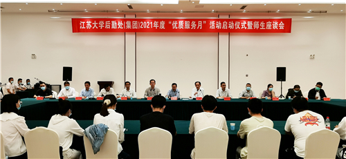 10月14日下午,江苏大学后勤处(集团)在青教公寓多功能厅举行2021年优质服务月启动仪式暨师生座谈会。后勤党委书记施爱平、后勤处(集团)处长(总经理)王善民、后勤党委副书记、纪委书记赵兴联、各科室(中心)负责人及师生代表50余人参加了启动仪式。会议由赵兴联主持。