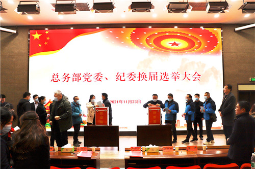 随后,大会进行了总务部新一届党委、纪委委员选举工作。大会表决通过了选举办法(草案)、监票人、党委和纪委委员候选人预备人选名单。大会按照选举程序,由全体与会党员以无记名投票差额选举方式,分别选举产生了由马柯、王伯平、乔艳茹、陈仲元、张洪、杨爱东(以姓氏笔画为序)6人组成的总务部新一届党委委员会和由毛大鹏、王伯平、杨俊、陈晓辉、徐乐(以姓氏笔画为序)5人组成的总务部新一届纪委委员会。