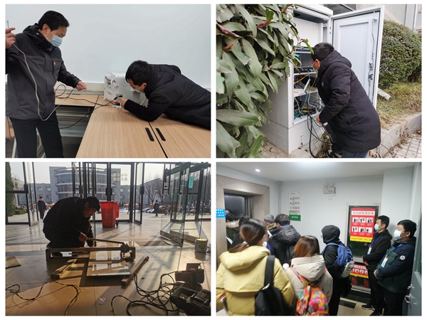 除此之外,西北农林科技大学后勤相关部门提前做好各项服务保障准备工作,确保考试顺利进行。西农后勤能源管理中心提前检查供电和供暖、考场电梯设备(线路、管道)运行情况,对北校八号楼考试用教室逐一检查考场温度,保证考试期间能源保障正常;考试当天,安排专人值守北校八号楼电梯间全程维护。西农后勤通信服务中心提前对所有研究生考试办公场所检查维护设备、调试电话,确保考场内和考场外所有的电话、传真都能畅通使用;联系运营商对北校南门区域的手机信号强度进行检测,调整实验楼通信基站天线位置,加强保障区域手机信号强度,确保考试期间所有通信设备正常使用,考生顺利进出校园,考试当天专人现场值守考场“三证核验”设备,对设备线路进行全程维护。西农后勤维修服务中心对考场桌椅、门窗、楼内热水器等进行全面检修,对教学楼供电线路、插座、楼层配电箱进行检查、维修,复核考试时间,校对调试教学楼钟表,配合信息化管理处做好考场外人脸识别等设备的安装,考试期间安排专人负责考场水电维修,随时应对突发情况。