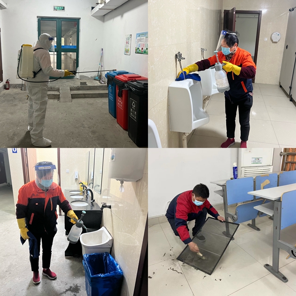 寒假期间,综合办公室配合学院制定《后勤保障组寒假期间、春季开学前防疫工作方案》。2月12日,饮食服务中心进行防疫演练;同时做好仓库盘点清查和餐具、餐厅环境消杀、清洁工作。2月13日,物业服务中心保洁班组开展新学期防疫消毒演练,常学常新,带领保洁员们重温防疫知识,更好地做好基础保障工作和自我防护意识。此外,物业服务中心提前做好消毒用品、口罩、防护服等防疫物资的储备工作,确保物资充足,助力开学防疫工作。2月17日,人事监控部开展班车防疫演练,并对班车进行全面细致的清洁和消毒
