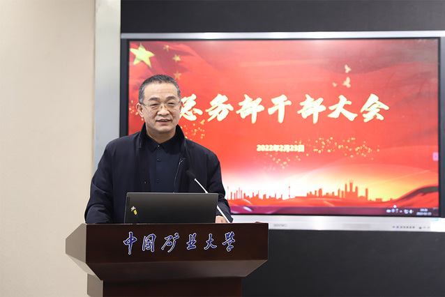 会上,总务部党委书记、部长陈仲元作了题为《坚持系统观念 强化顶层设计 做好重点工作 持续推进新时代学校后勤事业高质量发展》的专题报告。他从“注重理论武装,做到学思结合,做好顶层设计”、“深入推进后勤社会化改革,构建高质量服务保障体系”、2021年重点工作完成情况及存在问题四个方面对2021年学校后勤事业高质量发展情况进行了全面总结,并从党建、疫情常态化防控、后勤社会化改革、饮食品牌打造、智慧总务建设、校园节水先进单位创建、绿色学校建设、物流服务、学生宿舍安排、矿大特色监管制度体系建设十个方面部署了总务部2022年18项重点工作任务。同时,他对各位干部提出了角色定位、具体要求及落实2022年学校后勤事业高质量发展的工作要求。他指出,正职要有使命感,尽心工作,成为谋划专家;副职要有危机感,尽力工作,成为管理专家;班组长要有责任感,尽责工作,成为技术专家。各位干部须做到“情况明、决心大、办法多、效率高”,认真学习,适应转换;认清形势,善于谋划;开阔视野,勇于创新;克己奉公,清正廉洁,高质量落实2022年学校后勤各项工作任务,以学校后勤事业高质量发展服务、支撑、鼓舞广大教职工多出成果、快出成果、出大成果,为创建能源资源特色世界一流大学提供坚实的后勤保障。