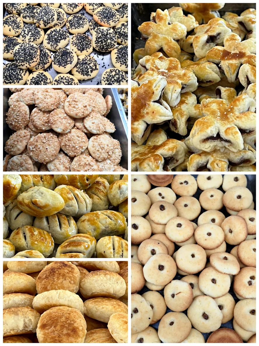 节日专属点心共计制作了10个品类,包括香甜梅花酥、白皮酥、红豆饼干、葡萄酥、小桃酥、花生酥、黑芝麻小饼干、香甜豆沙酥、白芝麻小饼干、黑豆沙馅小饼,每个餐盒分装4种不同的点心,每一种点心都香甜酥脆,各有特色,独具风味。