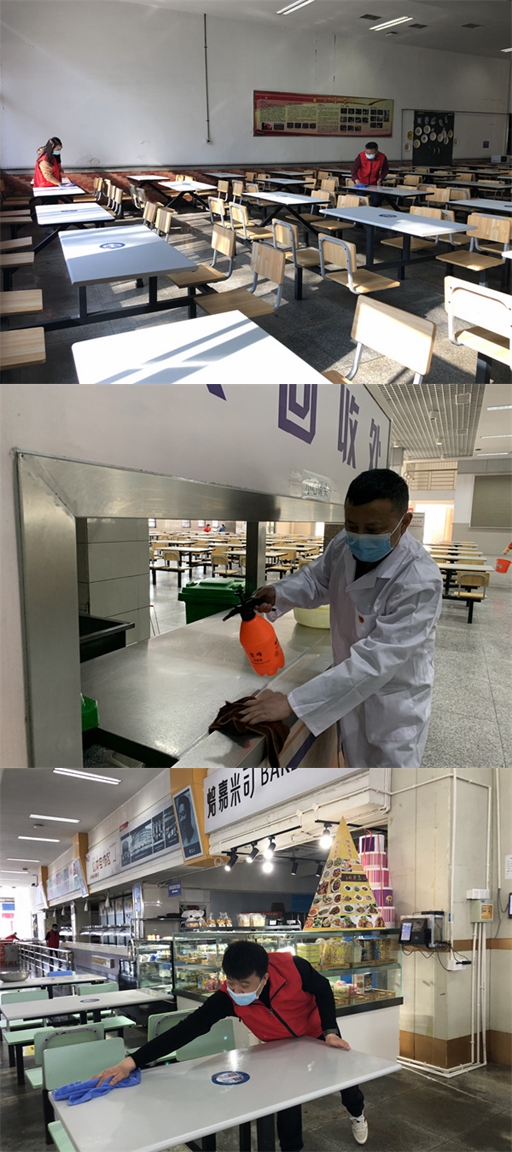 在清水河学子餐厅、沙河阳光餐厅,饮食服务中心党支部的党员们亮明身份,拿上喷壶、水盆、抹布等,干劲儿十足地投入到疫情防护工作中,对就餐大厅地面、餐桌椅、售卖台、打卡机等进行清洁和消毒。大家用自己的热情和汗水筑起疫情防护网,努力为广大师生营造一个干净整洁、安全舒适的就餐环境。