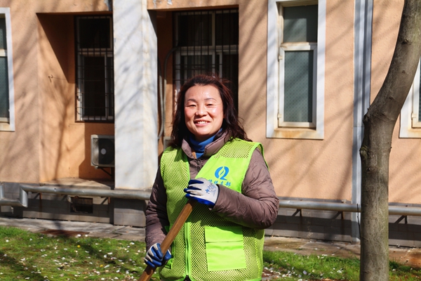 吴小兰是学校校园环境维护的保洁员,她和同事们承担着全校74万方道路清扫工作,平均人均清扫面积达2万方,每天,她们要挥动扫帚9000多次,弯腰7000多次,一年365天,风雨无阻。