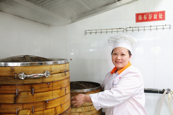 服务于桃园二楼蒸点档口的曾东娥,12年寒来暑往,四千多个日夜,每天凌晨1:50准时上岗,一天700斤面粉纯手工制作5000多个包子,经年累月的站立,双腿已经变形,她自己的工作注解着“做食品,就是做良心”。