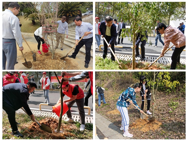 迟日江山丽,春风花草香。时值第44个植树节,为激发全体师生爱护树木、保护生态的文明意识,3月11日上午江西中医药大学在教学楼北面组织开展以“呵护环境,爱我校园”为主题的校园植树活动。党委书记徐兰宾、校长朱卫丰等学校领导与广大师生一起参与活动。