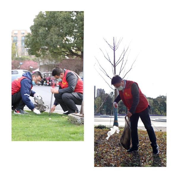 活动现场,志愿者分工协作,配合默契,大家认真拔除绿地中的杂草,用垃圾钳、垃圾袋等工具捡垃圾。尽管太阳下温度已近30度,但这丝毫没有影响志愿者的工作,他们一个个都认真、仔细地清理每块绿地、每个角落,将校园主干道绿化带周边的杂草、枯枝、白色垃圾、杂物和卫生死角都清理得干干净净。