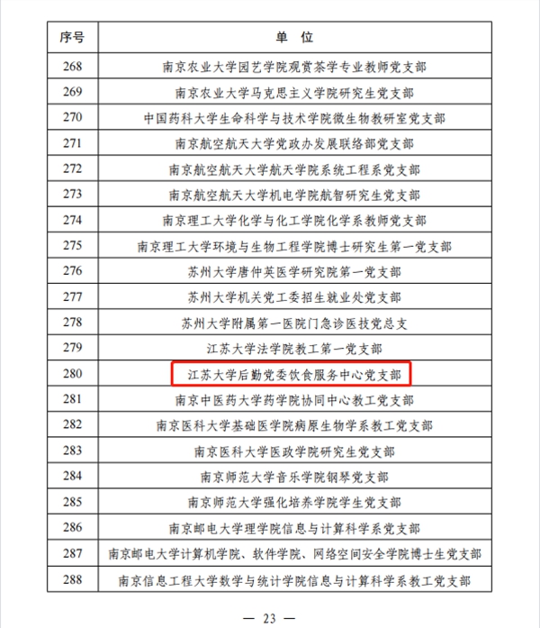 3月17日,教育部办公厅公布第三批全国党建工作示范高校、标杆院系、样板支部培育创建单位名单(教思政厅函〔2022〕4号),江苏大学后勤党委饮食服务中心党支部榜上有名,入选第三批“全国党建工作样板支部”培育创建单位。此项荣誉是全国高校后勤饮服系统唯一1家,也是本批次江苏省高校后勤系统唯一1家,实现了江苏大学后勤获得国家级党建荣誉零的突破!