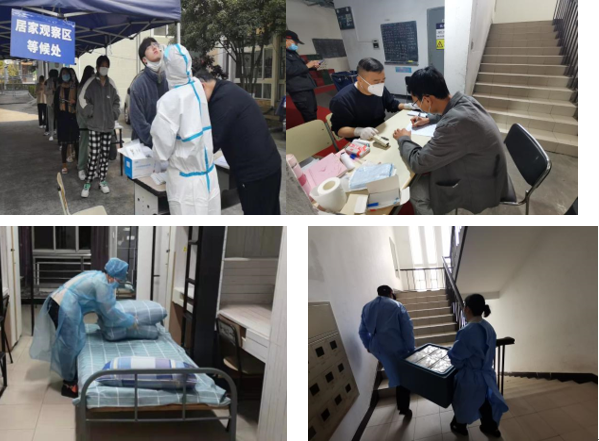 医学隔离区的党员坚持以身作则,各司其职,做到哪里任务重,哪里就有党员当先锋表率。在隔离区,党员同志坚持每天对隔离人员开展体温检测、医学观察,对住进隔离区的师生嘘寒问暖,给与人文关怀,耐心倾听他们的健康诉求,关心了解他们的身心状况,用微笑、真诚服务每一位留观人员。还当起隔离人员的贴心“保姆”,送达一日三餐、急需物品,清运垃圾等污染物,构建一道牢固的爱心“防疫墙”。