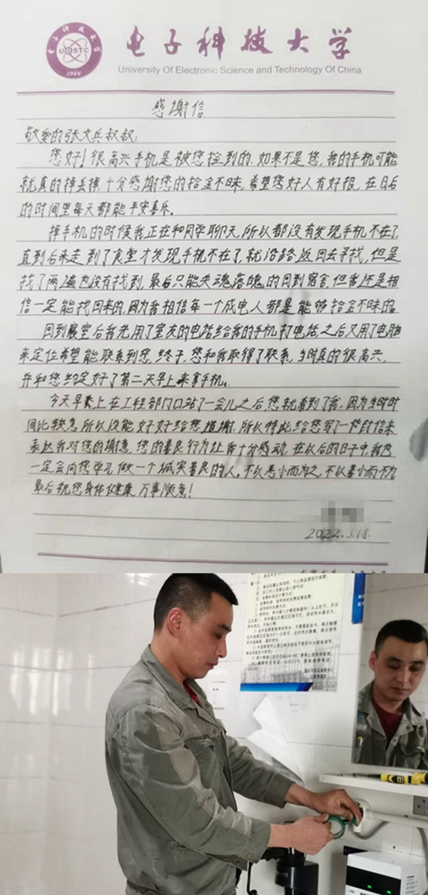 拾金不昧是中华民族的传统美德,这种正能量在张文兵身上体现得淋漓尽致。3月18日,同学拿着感谢信来到维修服务中心工程服务部激动地对张文兵表示感谢。