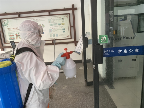历经多次战“疫”,后勤人始终坚守一线,全力以赴、抗击疫情。公寓服务部着力加大公寓区重点区域的环境消杀,确保学生公寓消毒消杀工作无死角、零遗漏,以更加科学、精准、规范的举措阻断病毒传播;为在校坚守的教职工提供应急棉被;利用LED电子显示屏滚动播放疫情防控宣传标语,严格按照疫情防控要求,抓实抓细抓好楼宇进出管控、安全巡视、应急处突等工作,严把进门关,学生进出“一人一卡一测温”,同时加强学生的人文关怀。根据相关防疫要求,4月1日上午,公寓服务部接到了准备好北区公寓三作为居家观察点的紧急任务;当日下午1点到6点,全体公寓人员争分夺秒、抢抓时间,在5个小时内,将北区公寓三弃用的164间房间全部腾空并保洁清扫到位,同时摆放了日常生活用品和防疫物资,再一次生动展示了嘉院后勤的力度与速度。