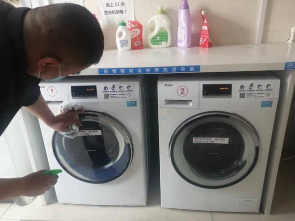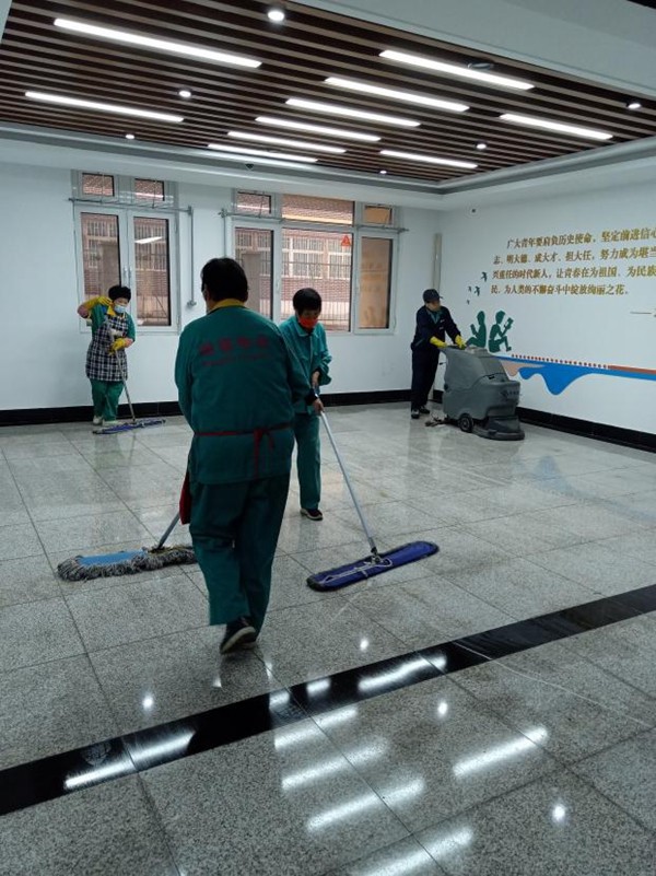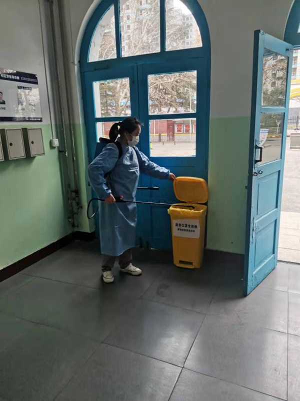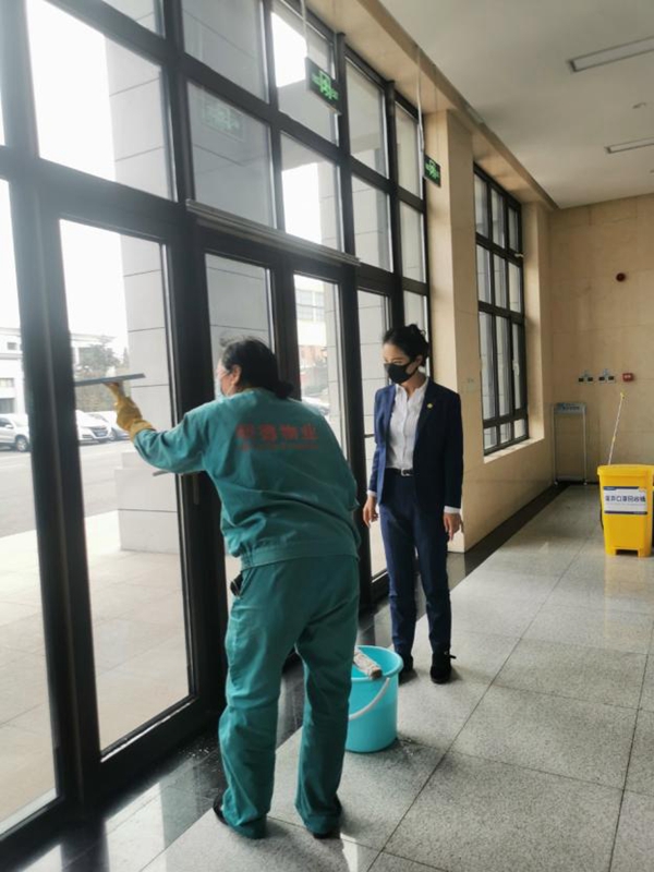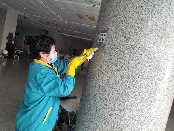 明德物业经理张硕、中铁诺德物业主管邵颖、康净物业主管王鸿美等物业公司负责人自封校以来一直坚守在工作岗位,带领全体物业保洁维修人员加班加点、全力做好卫生保洁和维修工作,他们从早晨6点开始工作一直忙活到晚上10点,最晚甚至到凌晨。很多保洁员一天工作下来累的腰酸背疼但仍然咬牙坚持,为的就是给师生创造一个干净卫生的学习、工作、生活环境。维修师傅每天也是马不停蹄地对水电暖管路进行检修维护,对损坏水管、电路进行应急抢修,确保水电暖运行正常,唯恐影响学生网课学习。
