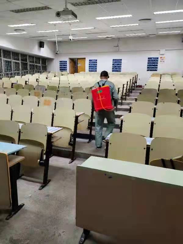 消毒是落实“人-物-环境同防”、切断病毒传播途径的有效措施和手段,做好消毒工作事关防疫整体举措落实,事关疫情防控效果。物业保洁人员责无旁贷承担起学生公寓、教学楼、图书馆、办公楼、实验楼、食堂餐厅等校园校舍的全面消杀工作。消杀人员严格按照省委领导小组(指挥部)办公室制定的《学校、社区和公共场所预防性消毒技术指引》有关标准要求和操作流程,对室内场所、会议室、办公室、箱式电梯、公共卫生间、垃圾站(桶)等区域和重点部位分门别类的进行消毒和通风,如电梯按钮、门把手、留观教室、留观宿舍等进行重点消毒,增加消毒频次,认真做好消毒记录和通风记录。校园中心、公寓中心对消毒通风情况进行检查和监督,确保消毒通风到位有效。